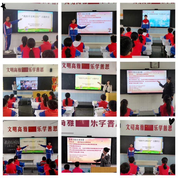 生活处处需要规则。只有遵守规则,生活才会有秩序。校纪校规正是校园里的“红绿灯”,时刻提醒大家遵守规则,规范言行。班会活动中,各班级首先通过PPT、播放校园内常见的不文明言行图片、学习校长寄语等多种形式,让同学们深入了解校园内常见的不文明言行,以及存在的陋习对自身和周围环境的影响。引导学生们结合生活实际,发现其中好的文明言行,并提出了培养文明言行的方法和建议,用校长寄语激励学生们养成良好习惯并不断坚持。