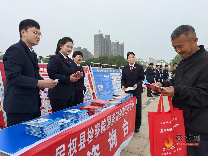 4月15日,民权县人民检察院开展全民国家安全教育日宣传活动。检察干警结合工作实际,通过摆放宣传展板、发放宣传资料及现场答疑解惑等方式,重点向群众宣传《国家安全法》《保守国家秘密法》及防范电信诈骗、防范非法集资等相关知识,引导教育群众要增强国家安全意识,自觉履行维护国家安全义务。