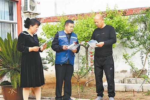 李玉传(中)在村民家中宣传如何防范电信诈骗。 本报融媒体记者 闫鹏亮 摄