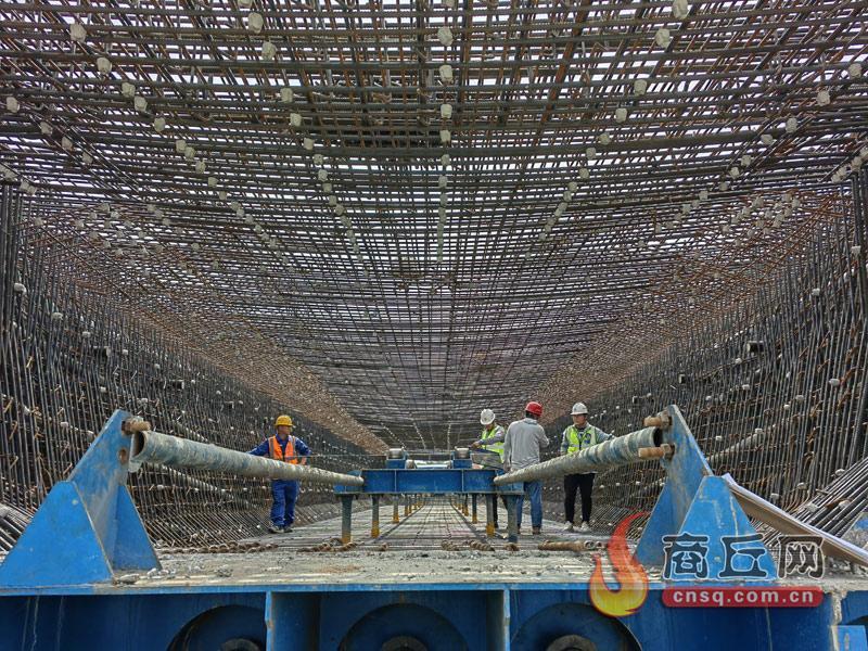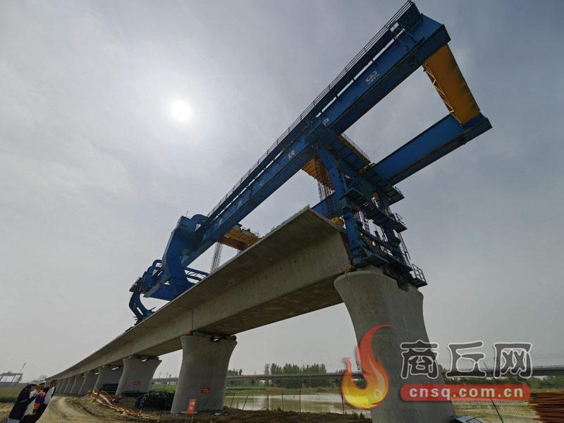 当前,京雄商高铁商丘段已累计架设箱梁37榀,跨清凉寺大道连续梁工程正在紧锣密鼓施工,该工程完成后将打通架梁通道,京雄商高铁商丘段箱梁架设将按下“快进键”。