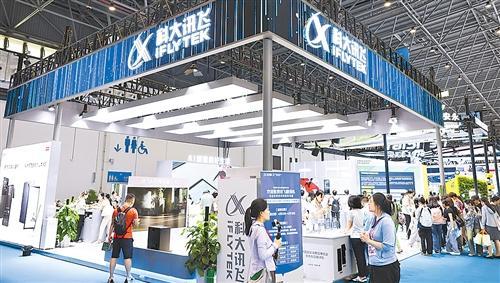 ①:这是4月17日拍摄的科大讯飞展台。 新华社记者 杨冠宇 摄