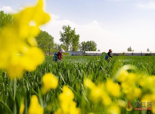 4月19日,夏邑县会亭镇西街西村村民对小麦进行病虫害防治作业。 王高超 摄
