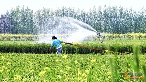 4月19日,柘城县起台镇史老家村村民忙着给小麦辣椒套种田浇水。 张子斌 摄