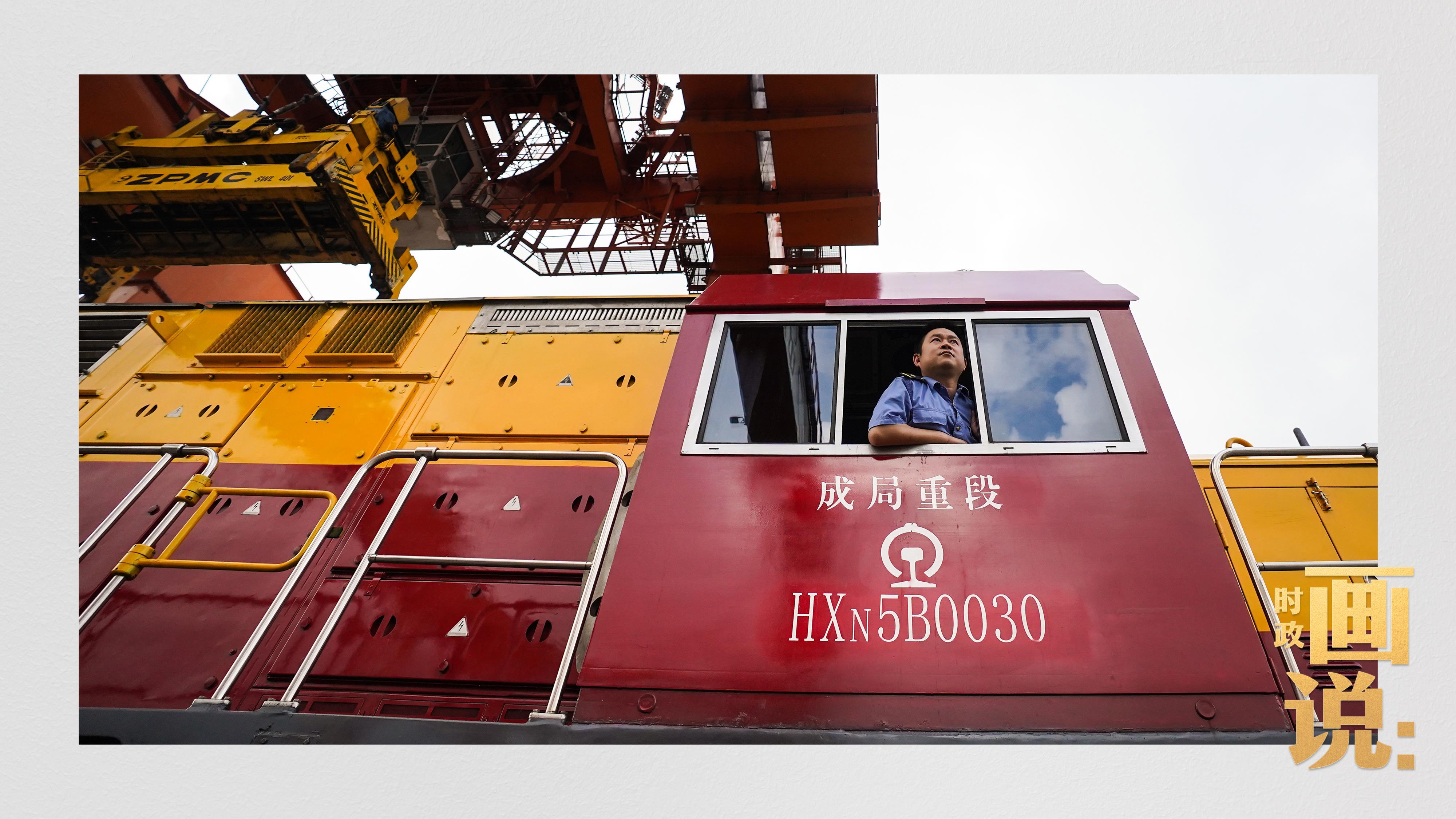 △完成装载任务的列车司机等待发车指令。沙坪坝,重庆。
