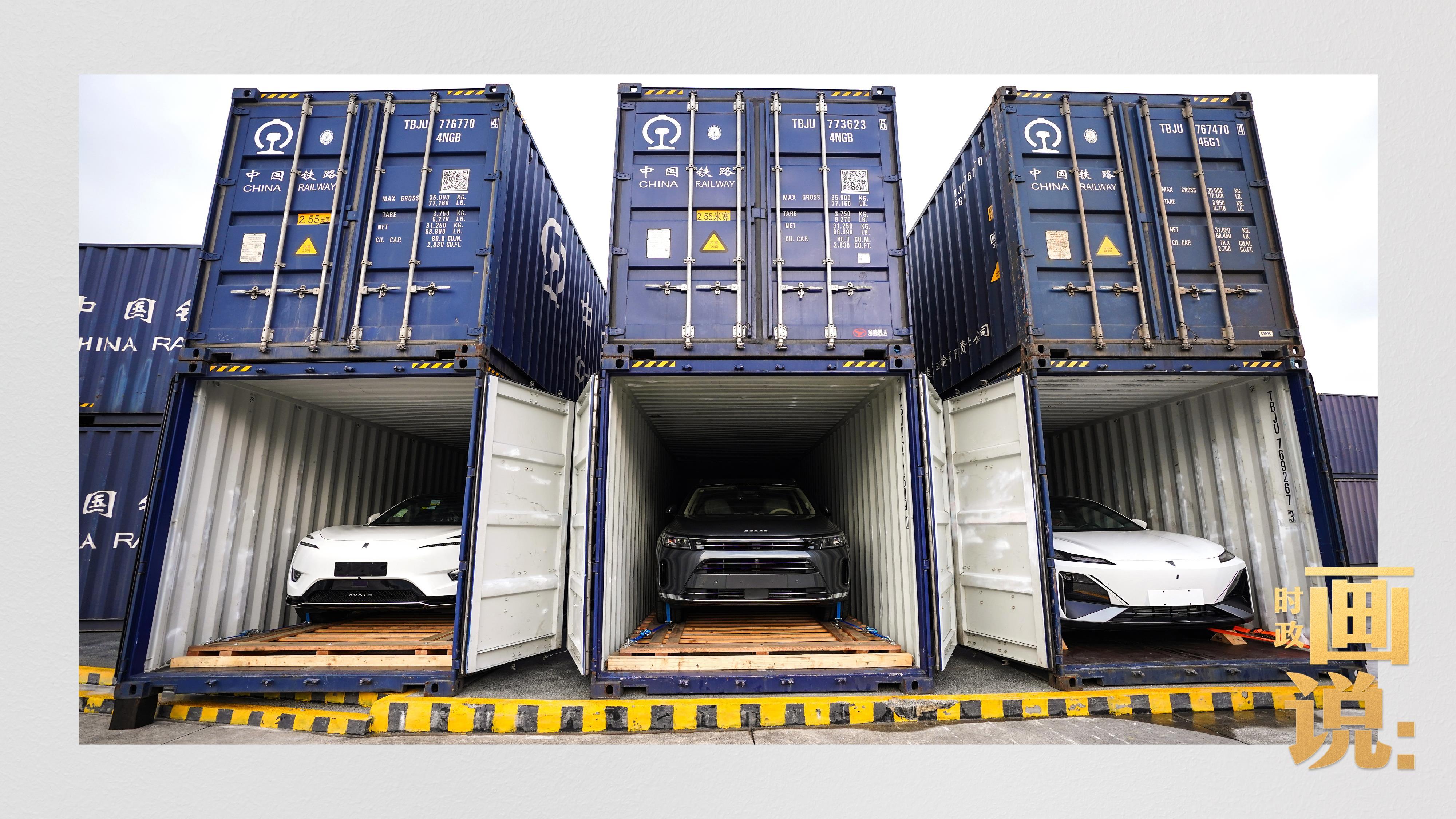 △装箱待运的国产新能源汽车即将从这里踏上出口之路。