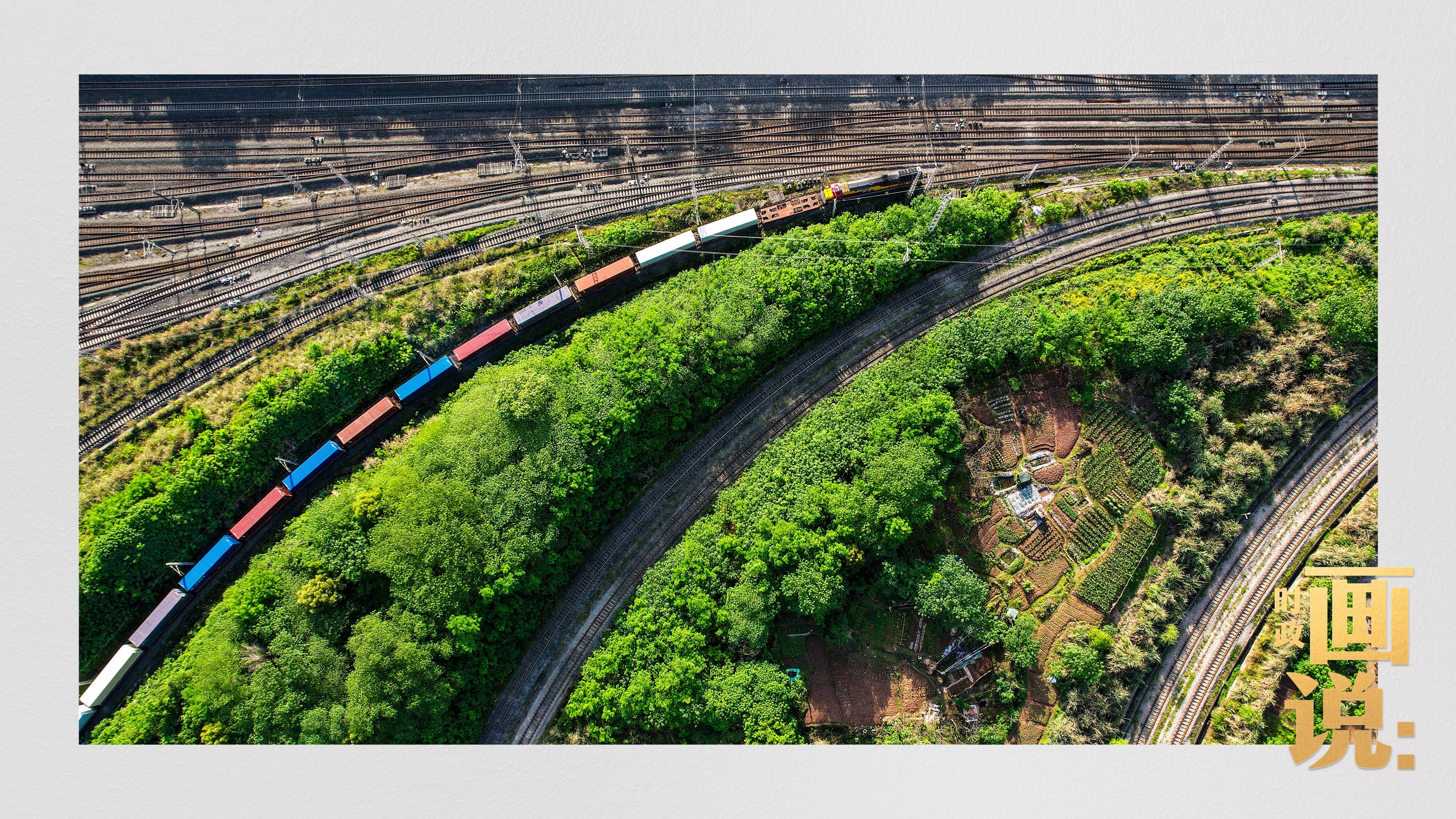 △西部陆海新通道铁海联运班列缓缓驶出场站。团结村,沙坪坝。