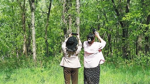 盛开的槐花吸引了大批游客前来观赏打卡。市民王秋梅跟朋友一块来森林公园游玩,她高兴地说:“你看这满树的槐花多漂亮,来这里拍拍照,遛遛转转,心情非常好,找到了童年的乐趣。”