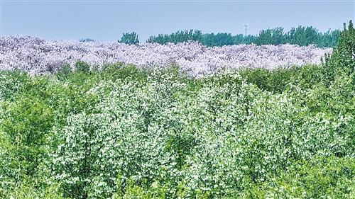 又到槐花飘香的季节。时下,商丘黄河故道国家森林公园的3000多亩槐花盛开,一树树槐花随风荡漾,甜香扑鼻;一排排泡桐花美丽盛开,枝叶繁茂,耸入云霄。