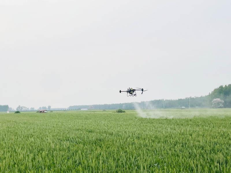 眼看着无人机快速、均匀地为小麦喷洒了农药,苏桥村村民李冰笑逐颜开:“我家种了15亩小麦,政府免费给做‘一喷三防’,省了几百块药钱不说,还省了很大工夫。真心感谢国家的好政策!”