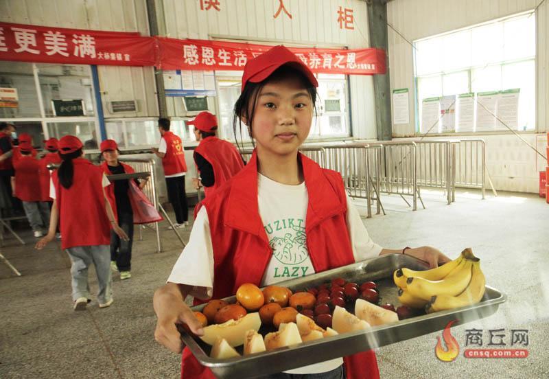 当天,马庄村和杨集村两处以孝治家大食堂,来就餐的80岁以上老人各有90余人。志愿者们分发菜、汤、馍、水果,忙个不亦乐乎,几个小义工身穿红马甲来回穿梭,成为一道亮丽的风景线。