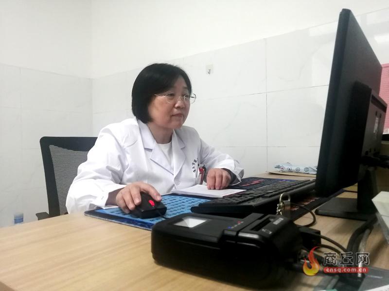 刘桂荣在查阅患者病历。 本报融媒体记者 张博 摄