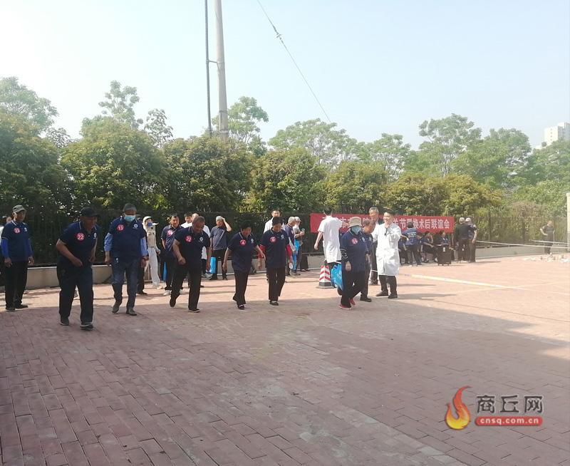 近日,商丘市立医院骨科举办第二届关节置换术后联谊会。该院医务人员在联谊会上讲解了如何延长人工关节使用寿命等知识,并设置了50米慢跑、趣味套圈等活动。本次联谊会的举办,为医患之间提供了良好的沟通机会,对普及康复知识起到了重要作用。图为术后患者参加50米慢跑比赛。