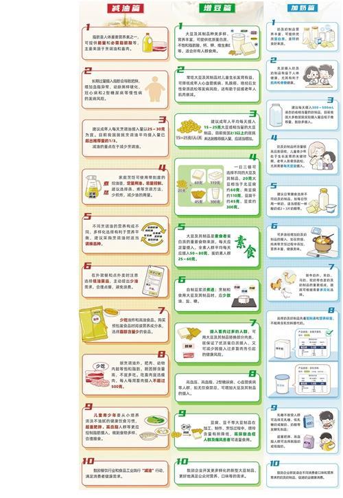 近日,国民营养健康指导委员会办公室印发了“‘减油、增豆、加奶’核心信息的通知”(以下简称《核心信息》),通知要求:2024年要围绕“合理膳食、健康生活”主题,聚焦居民突出的饮食消费不合理情况,着力减少食用油,增加豆及豆制品、奶及奶制品消费等,加大针对性科普宣传。