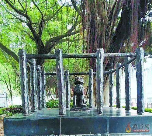 广西壮族自治区荔浦市“清风十里廉廊”文化景观带“牛栏关猫”雕塑。 袁正建 摄
