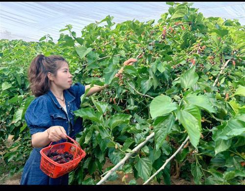 据了解,该家庭农场成立于2014年,占地200余亩,园内的桑葚除了供游客采摘,还加工成桑葚果汁、桑葚果醋、桑葚酒、桑葚干等多种产品。此外,该基地还帮助50余名群众实现家门口就业。“俺今年68岁,年纪大了没办法外出打工,平常就在农场上班,一天能挣80—100元。”正在采摘桑葚的村民王素娥说。