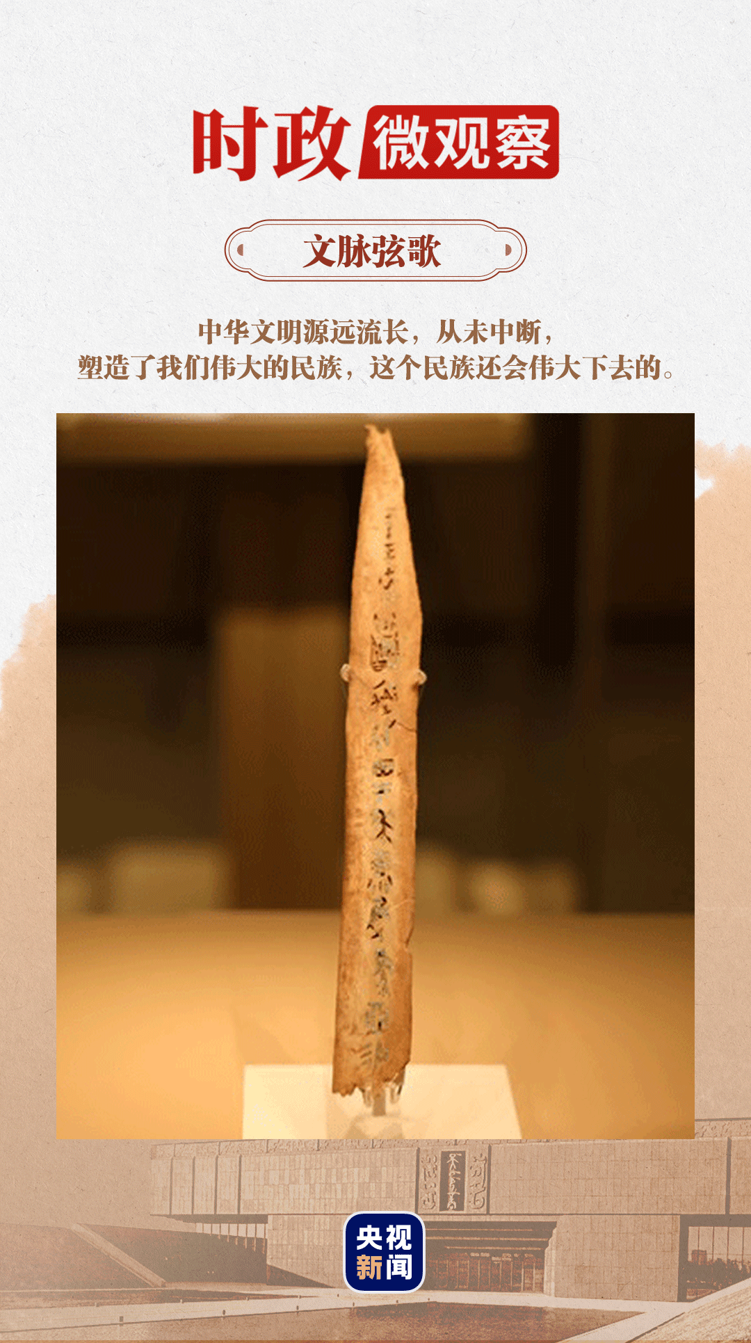 “五千多年的文明史,现在还在往前探源,我相信,我们的文明史更悠久。传到现在,要继续往下传。”