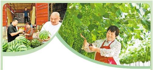“夏邑西瓜的主产区以大棚西瓜、葡萄、黄瓜等果蔬为主导产业,采取‘村党支部+合作社(协会)+基地+农户’农业产业发展模式,大力发展温室高效农业,做大做强做优特色产业,通过政府引导、整合资源、流转土地、(能人)示范带动,以点带面,辐射周边,规模发展,积极打造‘一村一品’。”北岭镇党委书记邵明启说,目前,全镇流转土地4.2万亩,发展大棚西瓜、青椒种植2.8万亩,优质葡萄种植1.2万亩,200亩以上的温室果蔬现代农业园区8个,千亩以上的温室现代农业园1个,是全国乡村特色产业十亿元镇、河南省种植业“三品一标”基地。