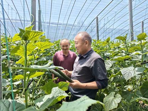 农民在大棚里采摘黄瓜。 韩际东 陈曦 摄