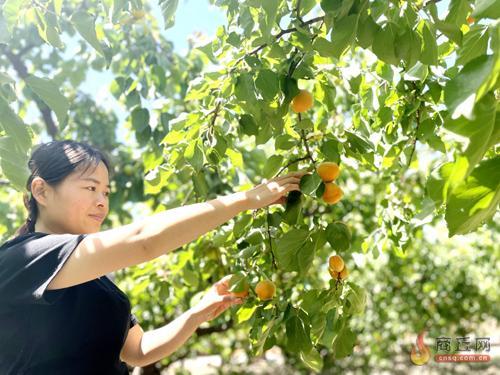 5月27日,游客在采摘成熟的黄杏。连日来,民权县孙六镇祝胡同村村民刘太平种植的20余亩黄杏陆续成熟,吸引了不少游客前来采摘。近年来,该镇统战部门立足镇况村情,积极出谋划策,指导农户发展果蔬种植业,促农增收,促进镇域经济发展。本报融媒体记者 闫鹏亮 摄