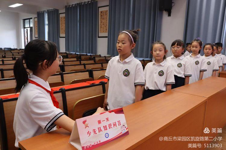队知识问答。同学们从少先队的名称到队员的标志,从少先队的创立者和领导者到队旗的含义,他们都能准确、流畅地回答。