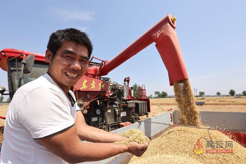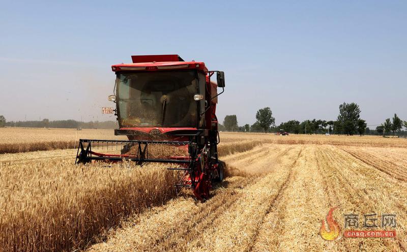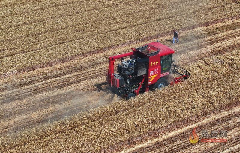 小满三日望麦黄,小满十日满地黄。5月28日,在民权县花园乡小老家村,收割机正在滚滚的金色麦浪中作业。麦收时节,满目金黄,商丘市的小麦陆续进入成熟期,一台台大型收割机在麦田作业,金黄的麦粒如银河泻地般落入车斗,运入粮仓。
