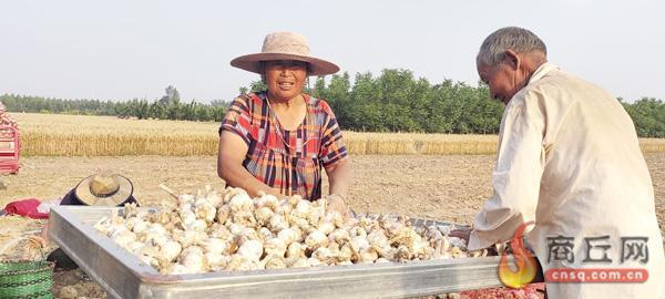 民权县南华街道办事处袁大村的蒜农在分拣大蒜