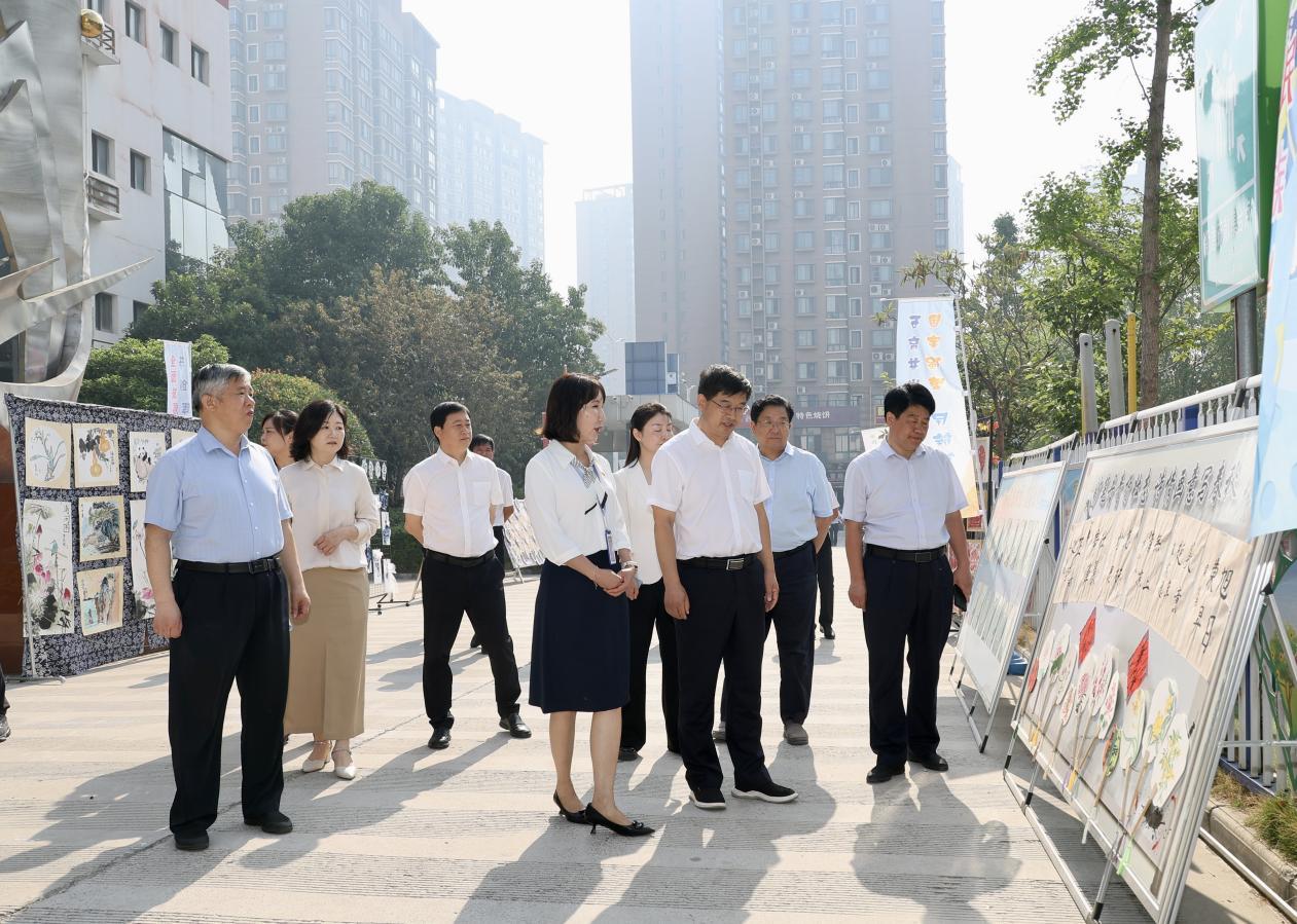 在谢晓燕校长的引领下,张书记饶有兴趣地观看了学校美术社团和手工社团师生制作的葫芦画、扎染、剪纸等手工作品,欣赏了师生的书法作品展和“六一”绘画作品展,对于该校在五育并举方面做出的扎实有效的工作,取得的显著效果给予了充分的认可和高度的评价。