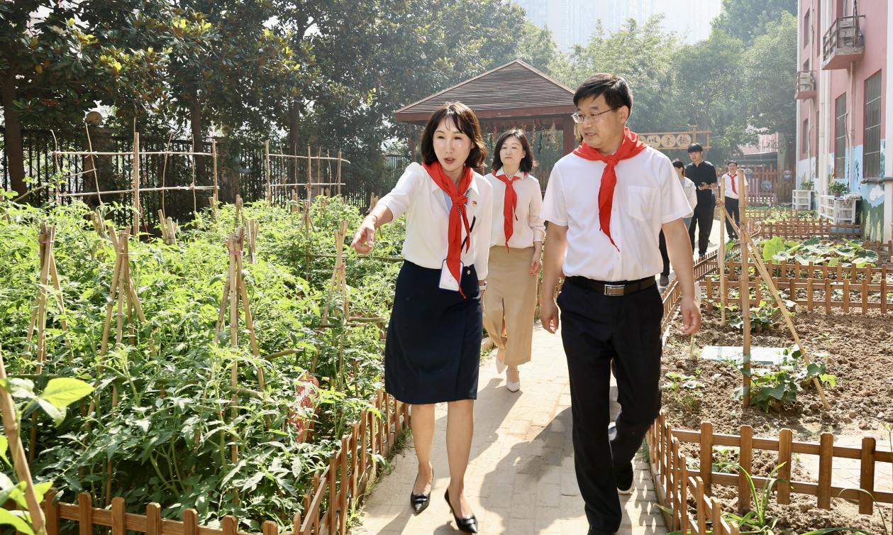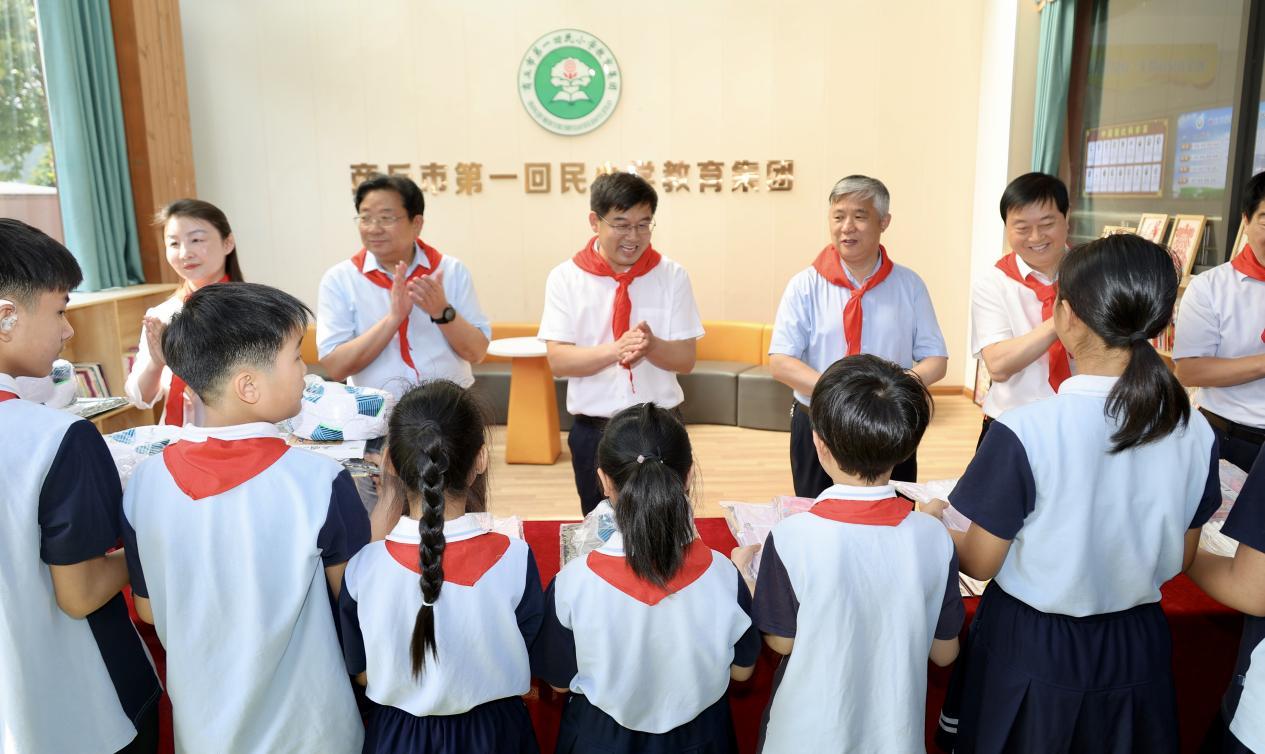 在学校小操场,张书记一行参加了该校的一年级新队员入队仪式,并为队员送去了殷殷祝福和希望。张书记指出,少年儿童是祖国的未来和希望,同学们要从小树立远大的理想、努力学习科学文化知识、锻炼强健的体魄、养成良好的习惯,早日成长为堪当民族复兴大任的新时代好少年。