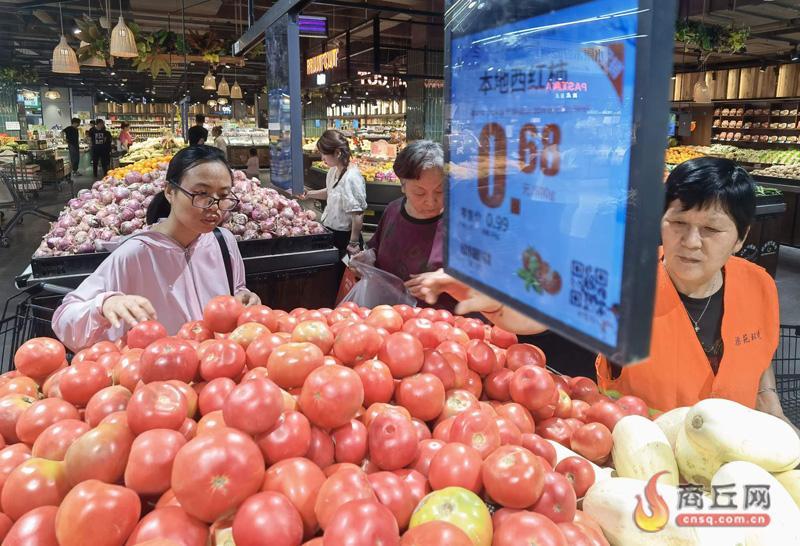 6月4日,在归德路旁一家超市里,每公斤1.36元的西红柿吸引了不少市民购买。商丘市场上西红柿的价格一直很坚挺,平均每公斤4元左右,随着本地西红柿大量上市,西红柿价格如今降到每公斤不足2元。