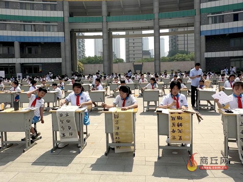 近日,市培文小学举行体育艺术节展演,百位师生全神贯注,现场挥毫泼墨,书写着整齐美观的汉字。 本报融媒体记者 谢海芳 摄