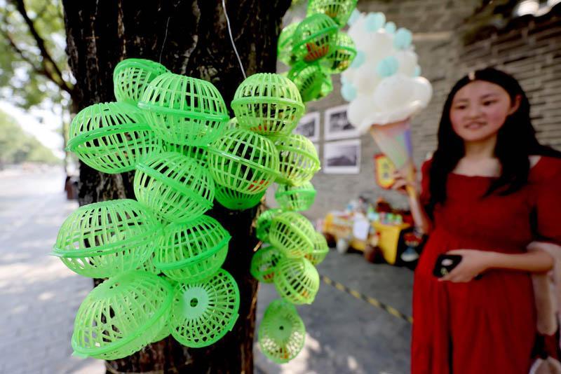6月12日,在商丘古城内,街头售卖的蝈蝈,吸引了不少市民的目光。“听到蝈蝈的叫声,勾起了童年的记忆,想起了许多儿时的趣事。”一名刚刚买了一只蝈蝈的市民告诉记者。