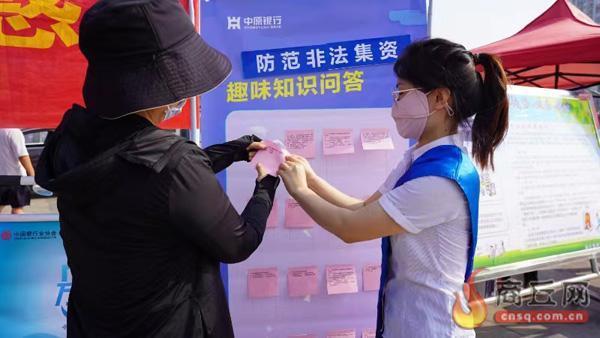 6月15日上午,商丘市2024年防范非法集资宣传月暨集中宣传日活动在商都广场启动。图为居民参与中原银行商丘分行的防范非法集资趣味知识问答。记者 霍天艳 摄