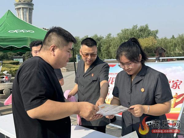 6月15日,柘城县人民法院组织开展防范非法集资宣传活动,通过向群众发放宣传手册、提供现场咨询服务、设立宣传展板、悬挂横幅等方式,向过往群众揭露非法集资犯罪本质,提醒公众在购买理财产品时,一定要保持理性,切勿因盲目追求高收益,而陷入非法集资陷阱。记者 梁晓晨 通讯员 张桂茹 摄