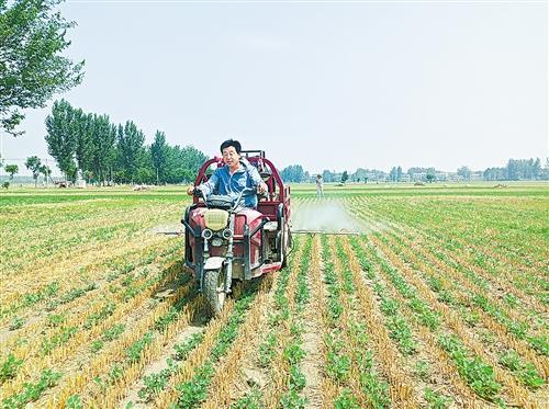 目前,夏收工作已经全部结束,夏种夏管工作正高效、有序地开展。6月18日,在民权县孙六镇吴廉庄村田间地头,记者看到村民正抓住雨后墒情有利时机,忙着补苗、追肥、除草、喷洒农药,保障秋粮生产。