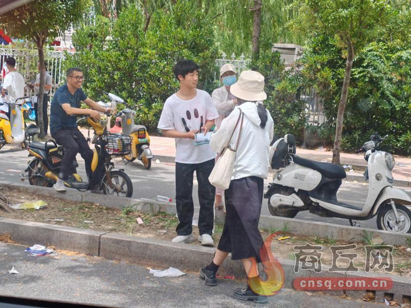6月24日,在商丘工学院周边,地面上散落着零食包装袋、废弃纸巾等垃圾,给城市文明添堵。