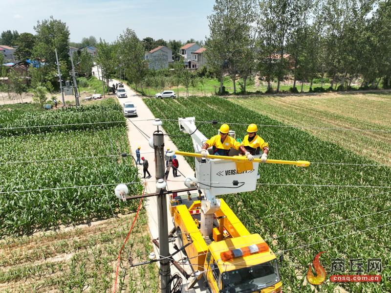 6月26日,商丘市天宇电力工程有限公司的工人在睢阳区冯桥镇进行电力抢修。随着气温走高,电网用电负荷持续加大。为保障电力可靠供应,奋战在各地的电力员工始终坚守在岗位上,全力保障人民群众生产生活用电。