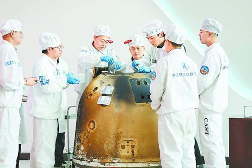 6月26日下午,嫦娥六号返回器开舱活动在中国航天科技集团五院举行。仪式现场,科研人员对嫦娥六号返回器进行开舱,检验关键技术指标完成情况 新华社发
