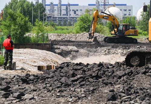 6月26日,机械设备在中鲜灌区渠首龙梦闸岸边开展排险作业。6月20日起,黑龙江省七台河市遭遇持续降雨天气,本次降雨导致七台河市新兴区、茄子河区、勃利县等地相继受灾。因水流冲刷回淘,七台河市勃利县中鲜灌区渠首龙梦闸近日发生左岸脱坡,右岸护坡脱坡、护岸下沉险情。经抢险人员连日奋战,目前龙梦闸左岸脱坡已修整完毕,正在进行右岸加固除险。 新华社记者 王松 摄