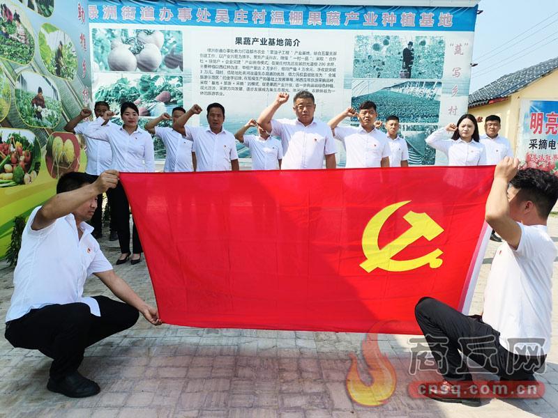 6月30日,民权县绿洲街道吴庄村党员面对鲜红的党旗,重温入党誓词。“七一”前夕,绿洲街道26个村(社区)党支部组织开展了一系列活动,庆祝中国共产党成立103周年。 本报融媒体记者 闫鹏亮 摄