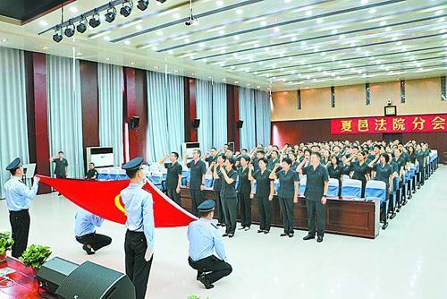 7月1日,夏邑县人民法院开展升国旗仪式、重温入党誓词、院长讲党课及“七一”主题演讲系列活动。本报融媒体记者 梁晓晨 摄
