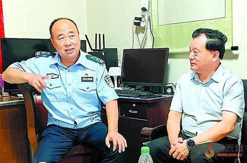 “河南好人”、商丘市久超粮油机械有限公司董事长张久超(右)慰问“商丘好人”、市公安局交警支队警务保障大队民警王宝玉。本报融媒体记者 李良勇 摄