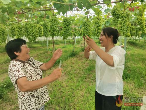 7月2日,睢县尤吉屯乡许堂村村民正在给葡萄疏果。该村发展葡萄种植300余亩,建起12座连体大棚,27座温棚,全村200户群众有160户靠葡萄种植走向致富路,亩均纯收入2万多元。
