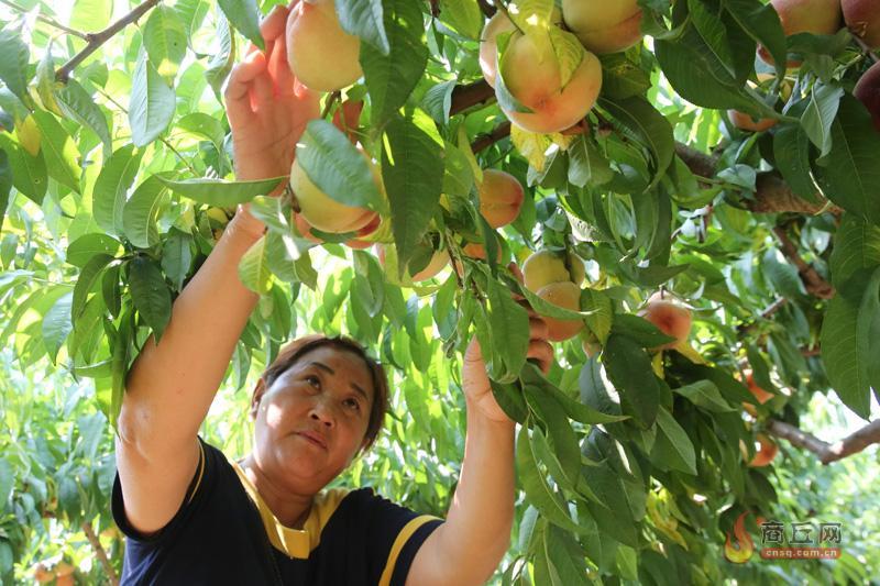 7月4日,城乡一体化示范区贾寨镇幸福村一处百亩果园内,种植户正在采摘桃供应市场。近年来,该镇因地制宜发展林果业,引导种植户种植新品种,提高果子品质,促农增收。