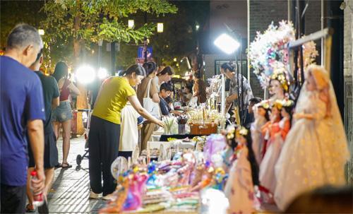 近年来,睢阳区古城街道聚力聚焦古城复兴,依托商丘古城深厚的历史文化底蕴,积极探索文旅融合新路径,紧紧围绕丰富夜生活发展夜经济,持续加强古城中山大街、特色美食街区的规划和管理,不断完善夜间服务功能。这里既有以归德胖嫂糖葫芦、陈家糟鱼、顾家古城小鱼汤、刘家烧饼为代表的传统特色美食,以及漆扇、剪纸、古法制香等非遗手工艺品,也有文旅文创产品体验店、汉服写真店、网红打卡地等新型业态。通过融合时尚、青春、潮流等元素,引领消费提质升级,满足个性化、品质化消费需求。新旧元素的有机融合,不仅为广大市民和游客带来了食、游、购、娱等丰富多样的互动体验和文化感受,也为古城的经济发展注入了新的生机与活力。