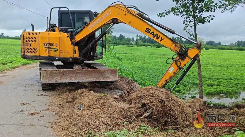 7月16日,逻岗镇组织人员机械疏通沟渠。 本报融媒体记者 高会鹏 摄