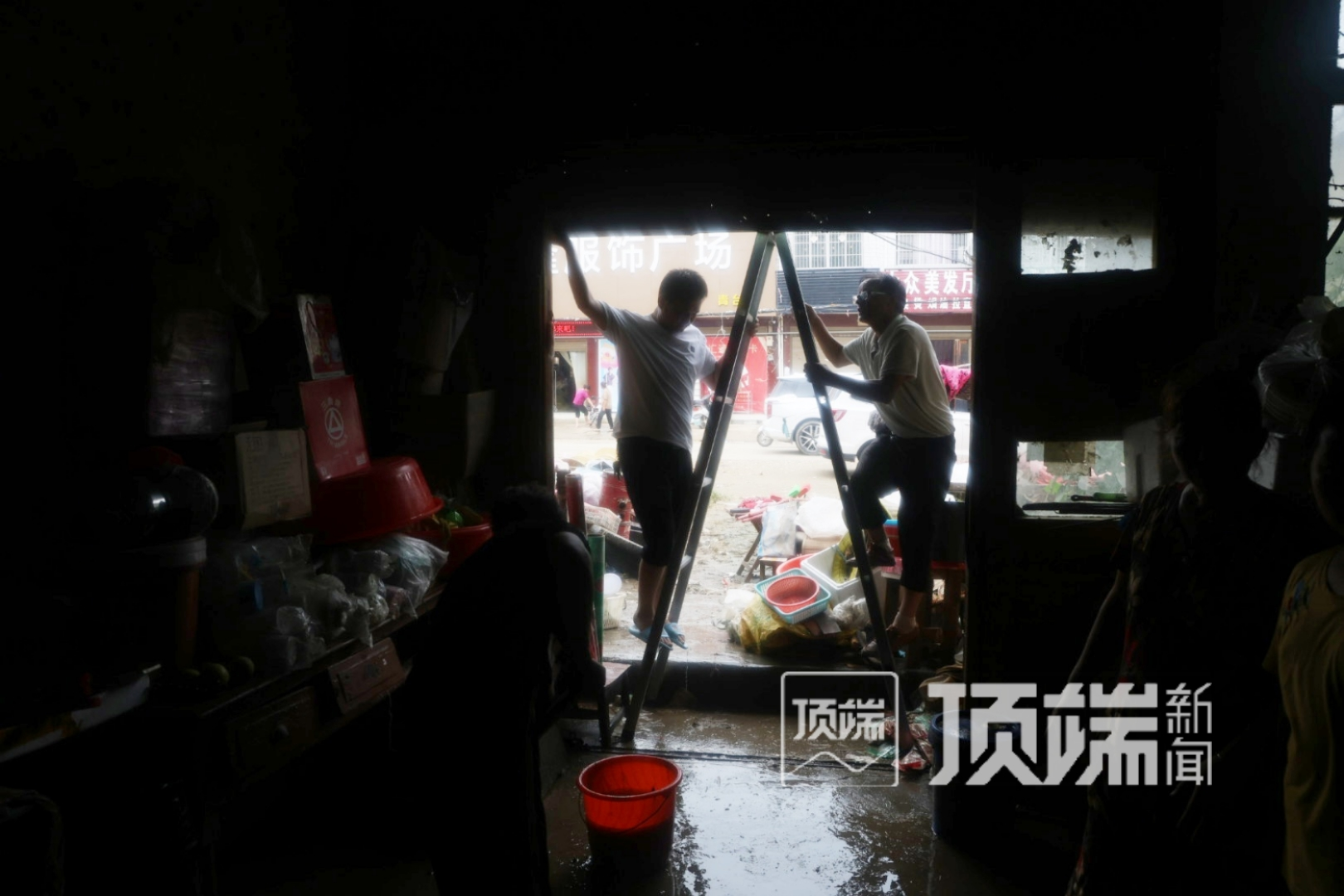 就在此前一天,这里还是救援队“冲锋舟”进村搜救的必经之路,7月16日被积水淹没的建筑也“露出真容”,墙上整齐的水痕记录着这里曾经发生的一切。