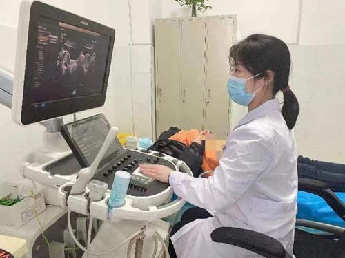 郜彩霞为患者进行超声检查。本报融媒体记者 李佩 摄