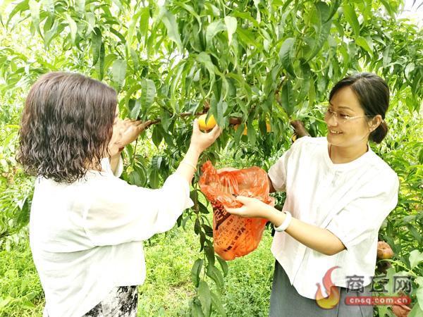 7月24日,游客在民权县北关镇芦楼村从献合作社蟠桃园采摘蟠桃。该合作社有蟠桃树100亩9万余棵,每亩收入2万余元。 记者 闫鹏亮 摄