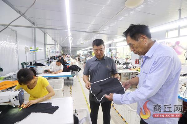 李红阳(中)在村办企业查看产品生产情况。记者 闫鹏亮 摄