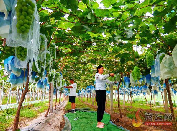 昨日,宁陵县阳驿乡阳光玫瑰种植基地里,成熟的阳光玫瑰葡萄碧绿中透着嫩黄,村民正忙着采摘。目前,阳驿乡葡萄种植现代产业园是国家葡萄产业技术体系豫东综合实验站设施葡萄示范基地。该产业园种植有3万亩葡萄,年产值6亿多元,也是河南省最大的无公害设施葡萄基地。阳驿乡树立以绿色科技带动农业产业的发展理念,用工业化思维发展现代农业,走出了一条独具阳驿特色的现代农业融合发展之路,被评为河南省“一村一品”示范乡镇、河南省农业产业强镇。记者 高会鹏 摄